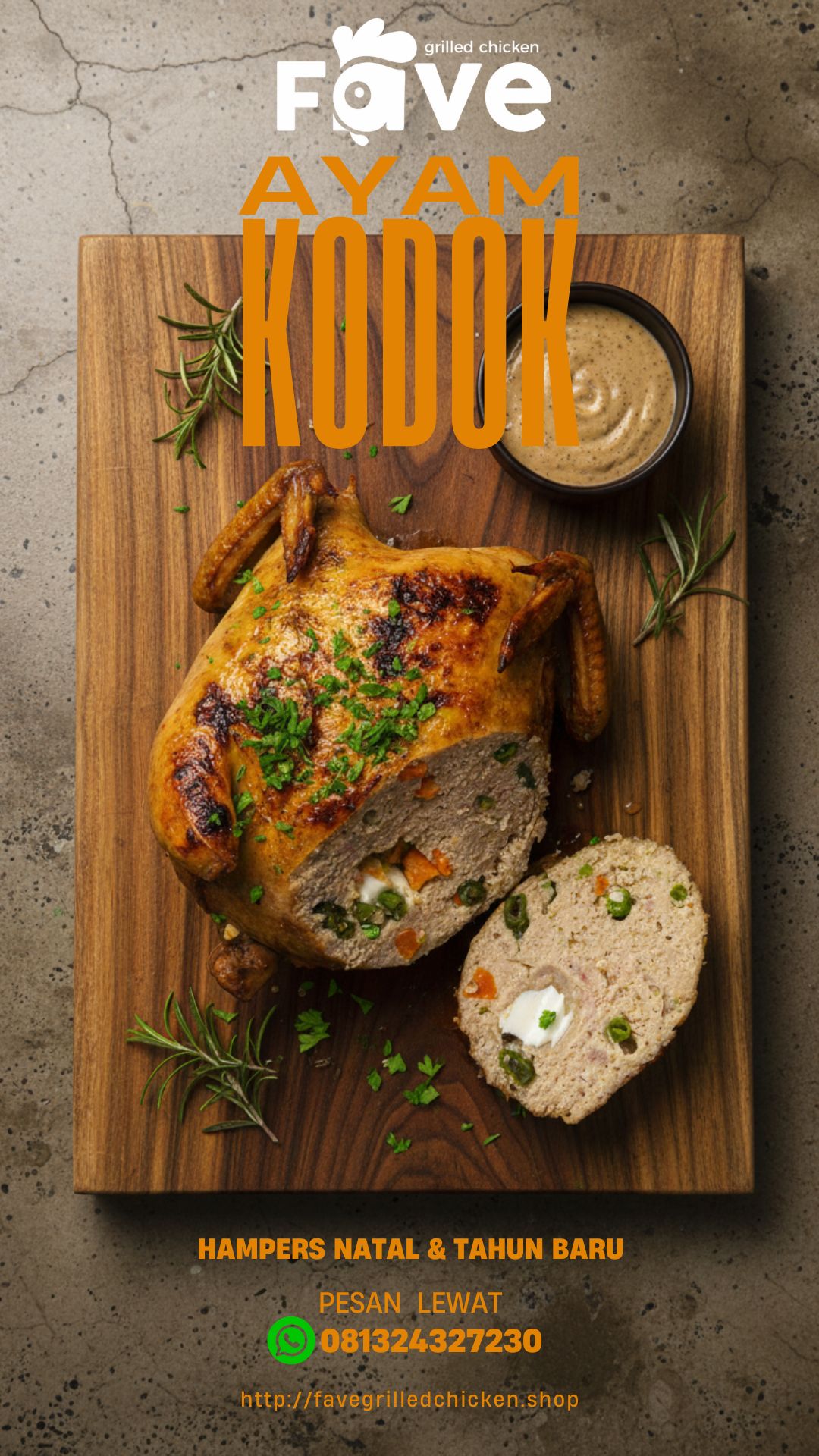 Rasakan kenikmatan ayam panggang dengan bumbu istimewa dan aroma khas.